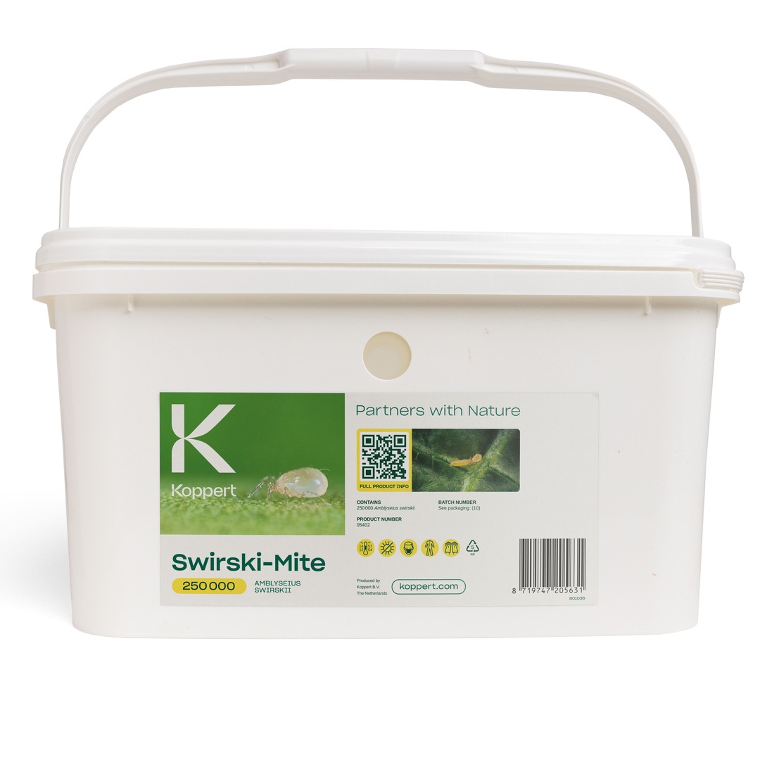 Amblyseius swirskii is toepasbaar in een reeks van groente- en siergewassen, echter niet in tomaat. In veel situaties geniet gebruik van SWIRSKI-MITE PLUS kweekzakjes de voorkeur.