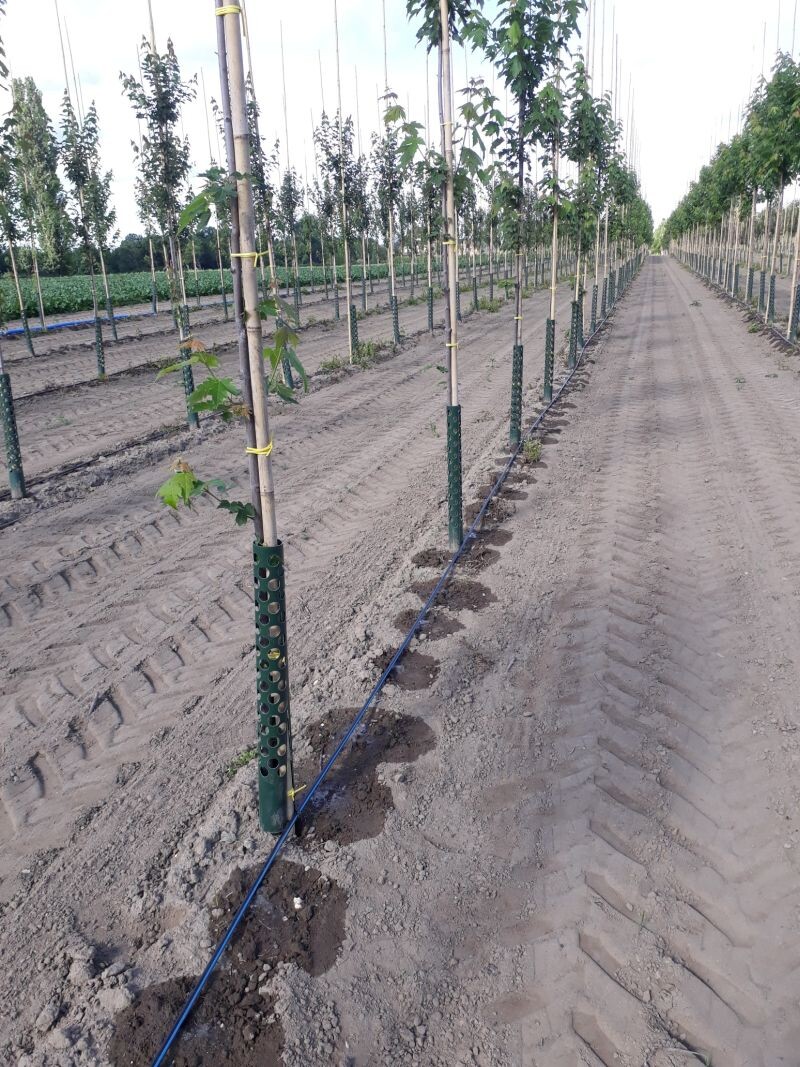 - Geen water over het bladerdek beregend wat de boom “hard” zet;