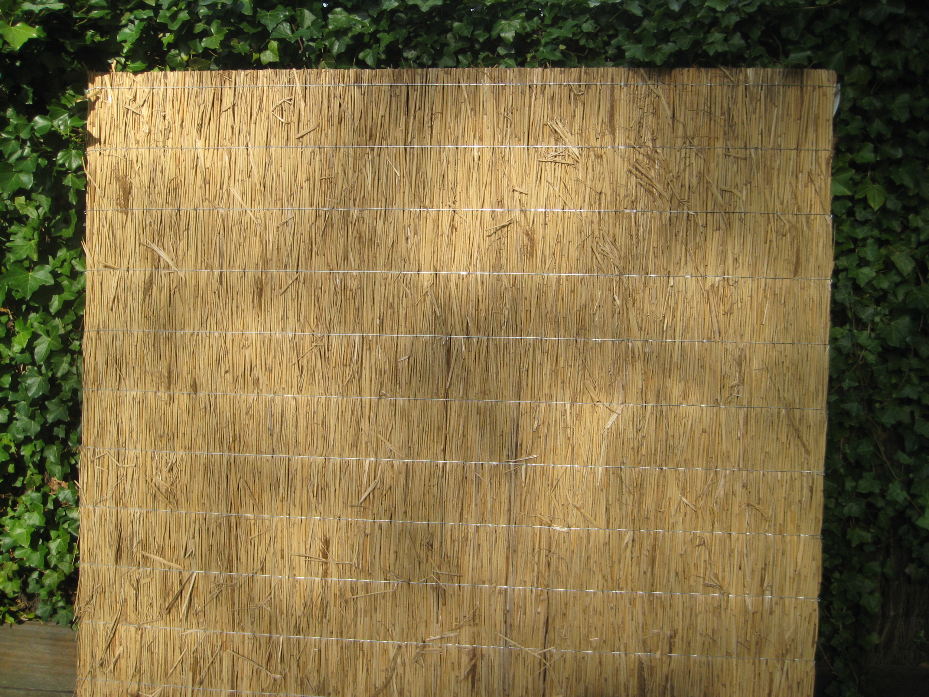 Bij deze stevige rietplaat zijn meerdere rietstengels samengeperst en samengebonden met gegalvaniseerd ijzerdraad. Wordt geleverd als een vaste plaat met een breedte van 200 cm, verkrijgbaar met een hoogte van 175 en 200 cm.