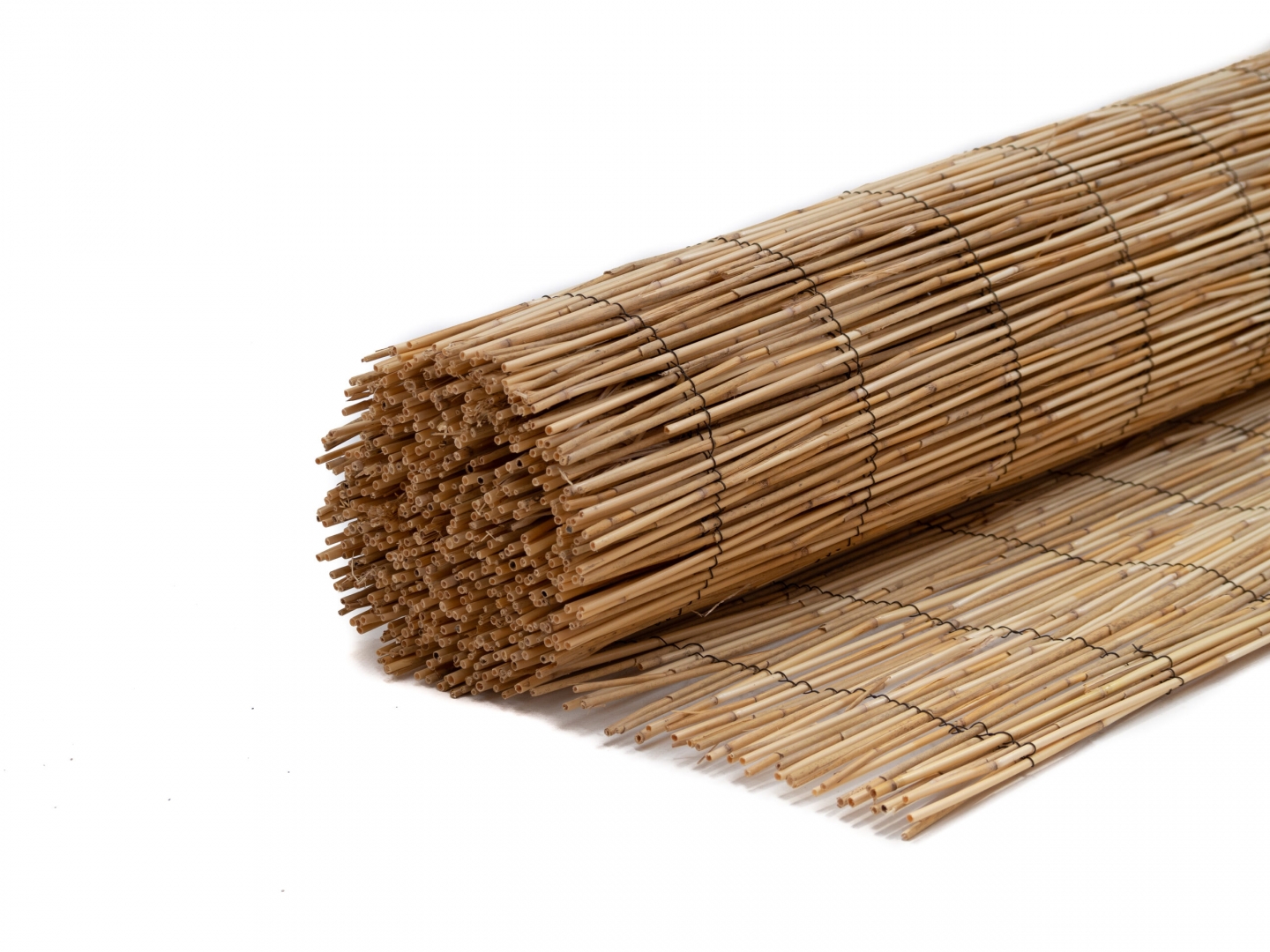 Bij deze tonkinmat zijn de rietstengels per stuk samengebonden met dun geplastificeerd ijzerdraad. Wordt geleverd op een rol met een breedte van 500 cm, verkrijgbaar met een hoogte van 100, 150, 180 en 200 cm. Ze zijn eenvoudig op maat te knippen met een snoeischaar.