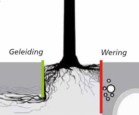 De minimale afstand van een boom tot een weringswand is 2 meter. Dit i.v.m. het feit dat weringswanden alleen wortels tegenhouden, niet geleiden. Weringswanden worden in de meeste gevallen alleen lineair toegepast, niet rondom een boom, of de afstand tot de boom moet dermate groot zijn, dat de stabiliteit gewaarborgd is.