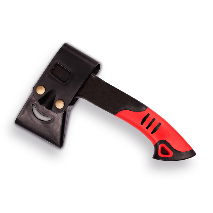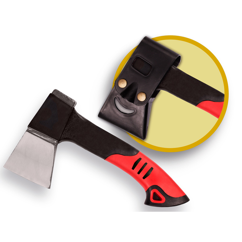Handbijl of campingbijl met een gewicht van 500 gram, compleet met fiberglassteel 23 cm met anti slip uiteinde, geleverd met holster om aan de broekriem te bevestigen, merk Everest.
